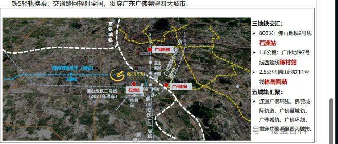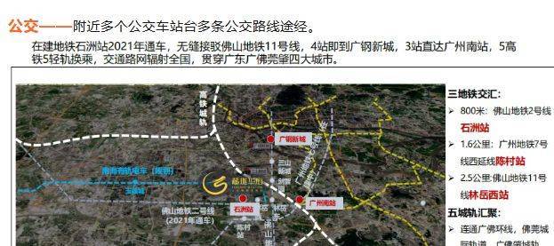地铁:佛山地铁2号线石洲站、广州地铁7号线西延线顺德线、佛山地铁11号线(规划中)、佛山地铁4号线(在建中)、广佛环线首段、南海新交通。