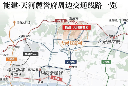 对于购房者来说,交通的便捷性至关重要,尤其是对于在天河东部工作的人群来说,通勤时间的长短,直接影响着生活品质。能建天河麓誉府最核心的亮点之一,就是“天河东最近地铁口项目”,依托地铁与路网优势,构建了多维立体交通网络,让业主的出行更加便捷。