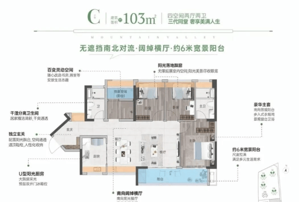 项目总户数774户,全部采用全南向布局,采光通风俱佳。主力户型涵盖约85㎡、98㎡、103㎡三至四房,使用率高达94%,远超市场平均水平。其中,85㎡三房拥有超5米宽南向阳台,视野开阔;98㎡户型更是区域内稀缺的小面积四房,满足多孩家庭或三代同堂需求;103㎡户型则实现南北通透,搭配超6米宽横厅阳台,空间感与舒适度兼备。每一寸空间都经过精心规划,真正做到“小而精、实而美”,让有限面积释放无限生活可能。