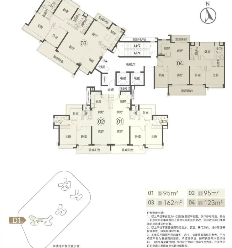答:主力户型为 95㎡南向三房、123㎡南北通透四房、162㎡楼王四房,全南向设计,2 梯 4 户,采光通风极佳。限时福利,名额有限,【紧急通知】限时 95 折+送品牌家电大礼包)【新鸿基峻銮】最新官方售楼部电话 400-0688-602 专属权益(2026 最新官方认证)开发商直营、无中介、24 小时预约专线