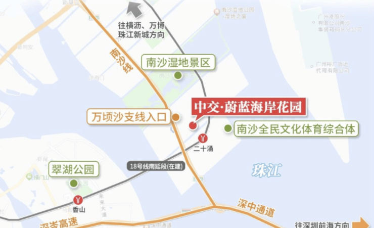 项目位于二十涌核心地段,地处南沙战略开发轴心,承接大湾区城市功能扩展,未来将成为南沙高水平开发的重要门户。交通方面,项目直通深中通道和南中城际,覆盖广州、深圳、中山、珠海等核心城市,半小时即可通达大湾区主要经济节点。片区规划有国际总部区、数字创意区和大型医养综合体,未来商业、文化、体育设施齐备。黄金区位不仅体现为便利出行,更意味着项目的长期升值潜力和居住品质双重保障。