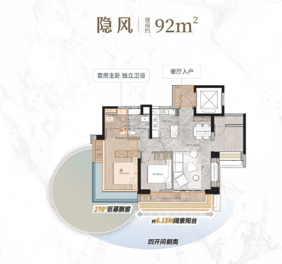 建面92㎡户型主打高实用性,是刚需家庭的首选。该户型南北通透、厨卫全明,没有暗角空间,主卧带套房设计,配备独立卫生间,保证了主人的居住隐私,也能避免早晚高峰家人抢卫生间的尴尬。户型整体方正,几乎没有浪费空间,客厅、卧室尺度适中,即使是三口之家居住也不会显得拥挤,小面积实现了居住舒适度的最大化,总价328万起就能入手,对刚需家庭十分友好。