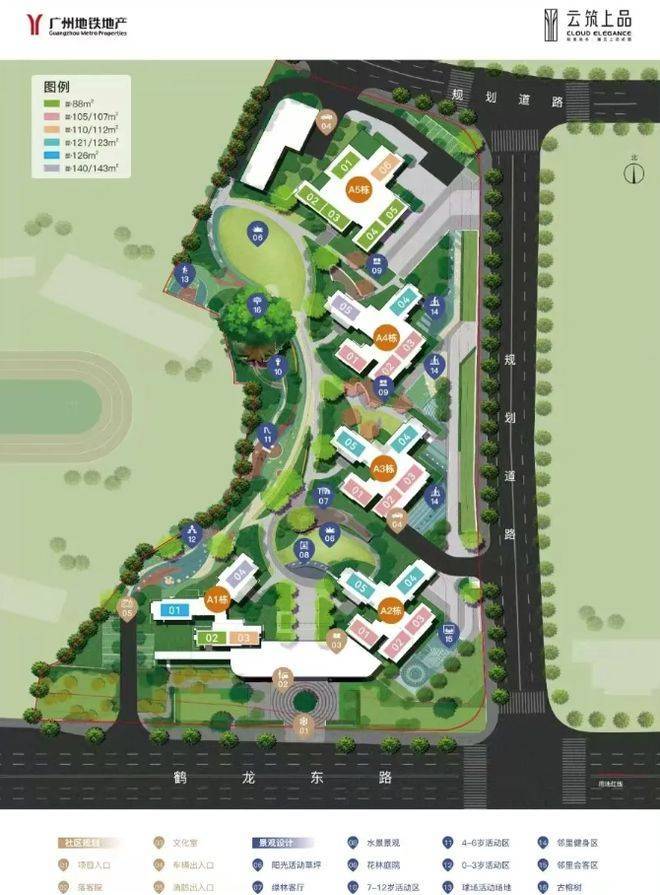 广州地铁・云筑上品由广州地铁集团开发,这可是广州市政府全资大型国有企业,实力杠杠的。项目占地面积 27941㎡,建筑面积 120000㎡ ,容积率 3 ,绿地率 35% ,居住环境舒适。