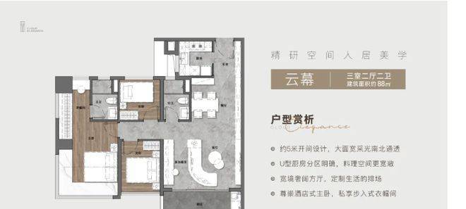广州地铁・云筑上品的户型设计很有亮点。规划的 5 栋住宅采用蝶式塔楼设计,是新规后的项目,户型使用率都超过 100%。有建面约 88㎡三房两厅两卫、105㎡四房两厅两卫、121㎡四房两厅两卫、143㎡四房两厅两卫等多种户型。户型空间布局合理,能充分利用每一寸空间,满足不同家庭的需求,居住舒适度大大提升。
