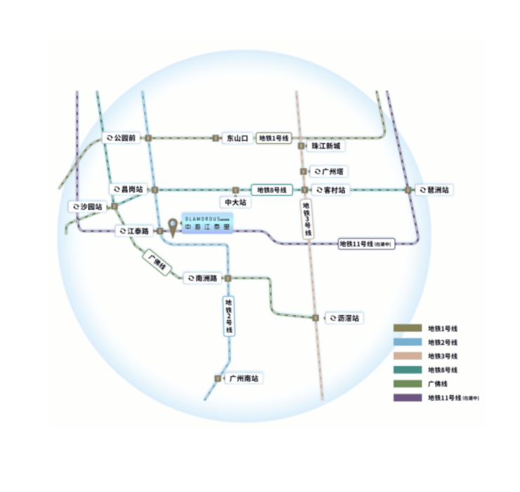 中海江泰里紧邻江泰路地铁站,距离约150米,步行仅需200米,便捷直达2号线与11号线交汇站点。2号线贯穿海珠、白云和越秀,可直达海珠广场、公园前及火车站,快速覆盖市中心重要节点。11号线构成市区环线,连通琶洲、金融城及天河北,提升出行效率。项目周边换乘便利,可通过3号线、1号线、8号线等快速到达中大、珠江新城及东山口。自驾方面,江南大道、工业大道、广州大道、内环线及环城高速环绕,轻松通达珠江新城、琶洲及佛山各主要区域。无论地铁还是自驾,中海江泰里都可实现核心区高效通勤,为居民生活和工作提供全方位便利。