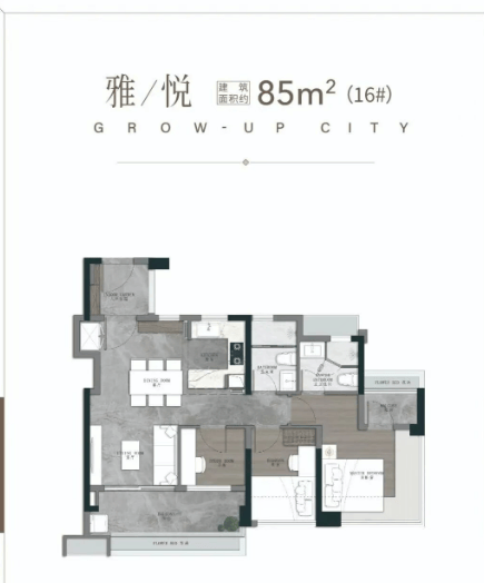 二期在售户型覆盖 76-125㎡三至四房,均为全南向设计,使用率超 100%,空间利用率在刚需盘中表现突出。76㎡三房两卫为年轻人上车首选,四开间朝南搭配全明转角玄关,开放式厨房与开阔景观阳台相连,主卧带衣帽间与南北对流设计,兼顾实用性与舒适度;86㎡三房两卫则是一期 “断货王 PLUS” 户型,11.1 米南向采光面 + 5.4 米跑道式阳台,主卧 270° 无立柱景观飘窗,满足三口之家的居住需求。