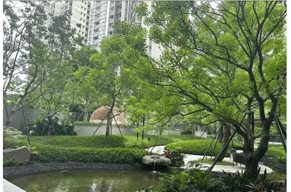 项目内部打造约1.26万㎡“樾系”主题园林,融合岭南水景、林荫步道、全龄活动空间,绿化率达31%,营造低密静谧的归家动线。外部生态资源同样出众:步行150米即达庄头公园,1公里内覆盖海珠湖公园、海珠湿地公园(城市绿肺),形成“社区园林+城市公园”双重生态屏障。尤其海珠湿地作为国家级生态保护区,不仅提升区域宜居度,更带来长期环境溢价。尽管项目地处老城区,但通过内部精细化营造与外部生态资源联动,成功实现“闹中取静”,满足高端客群对自然与宁静的双重渴望。