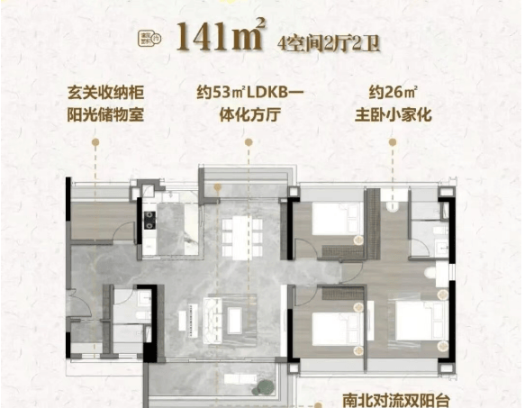 江湾和樾主打107–187㎡三至四房,使用率高达95%–98%,远超市场平均水平。主力户型如122㎡四房、138㎡四房均采用四开间朝南、南北对流、双面宽阳台设计,最大化采光与通风。186㎡以上大平层更配置L型转角阳台,270°揽江视野一览无余。层高3.15米,营造出酒店式空间感;梯户比为2梯3户或2梯4户,兼顾私密性与通行效率。值得一提的是,3、4、5栋南向单位直面珠江,无高层遮挡,真正实现“推窗见江”。在当前市场普遍压缩得房率的背景下,江湾和樾以高实用率+景观溢价,重新定义海珠西改善标准。