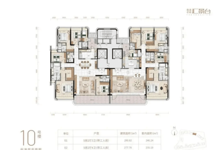户型面积段:覆盖123㎡三房至290㎡五房,满足不同家庭结构需求。
