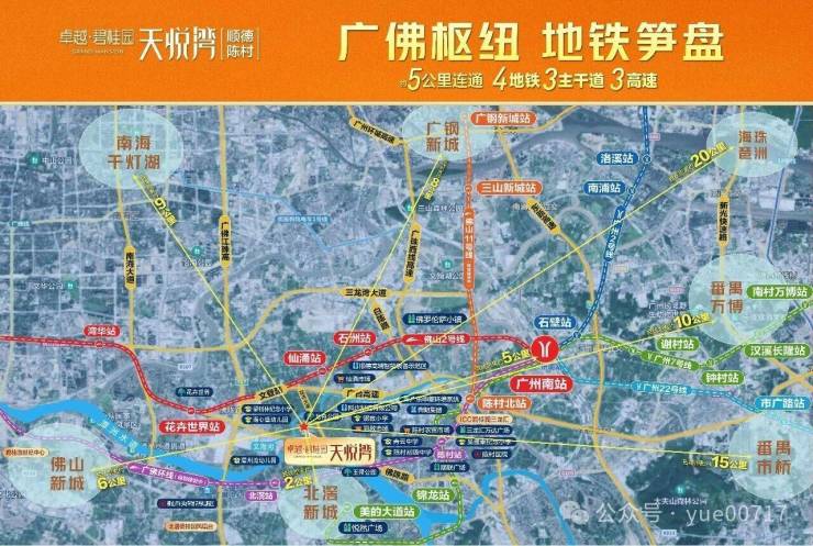 卓越碧桂园天悦湾精准践行“主城双区交汇,占位时代风口,把繁华与自然藏进日常”的核心定位,择址佛山陈村核心板块,地处临广腹地,占位广佛同城发展风口,由卓越、碧桂园、金茂三强联袂打造,凭借清盘特价10000元/㎡起、总价76万左右即可入手带装修三房的极致性价比,成为临广板块刚需客群的关注焦点。项目具体位于顺德区仙涌大道与花卉大道交叉口西南300米,坐拥陈村与佛山新城双区交汇红利,依托三龙湾规划加持,周边产业集聚、交通路网逐步完善,兼具繁华与自然双重优势。交通层面,项目紧邻佛山2号线仙涌站,直线距离超2公里,需依靠公交接驳,4站可直达广州南站,虽不适合依赖地铁通勤的广佛候鸟,但自驾出行便捷,可快速衔接佛山一环、广珠西线等主干道,实现1小时畅达广佛核心区域。作为陈村板块的现房江景楼盘,项目北侧紧邻文海河,部分楼栋可俯瞰一线江景,周边临近陈村花卉世界,自然景观优越,同时占位临广核心区位,既能享受陈村本地成熟配套,又能便捷对接广州、佛山新城的优质资源,实现繁华与自然的共生,精准适配预算有限、以自驾为主的纯刚需客群。工作日的上午,项目营销中心门口常停满看房客的车辆,其中三成左右为粤A广州车辆,可见其对广州客群的吸引力。