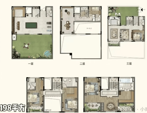 198㎡(B户型)得樾:宽敞舒适,为家庭成员提供充足的私人空间。