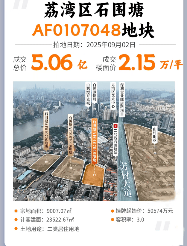 从土地价值来看,石围塘板块宅地供应极度稀缺。上一次宅地出让还是 2023 年 4 月,广州建工联合体拿下桥梓大街南侧 AF010645 地块,楼面价 21999 元 /㎡,打造建鑫・如意芳华项目。而国贸保利海上印所在地块,宗地面积 9007㎡,建筑面积 23552㎡,容积率仅 3.0,是荔湾经典的 “小而美” 优质地块 —— 体量小、总价低、配建少,开发难度低、产品打造更纯粹,此前同类型地块主打刚改户型,去化速度远超市场预期,而当前石围塘板块小户型供应严重缺货,国贸保利海上印的登场,恰好填补市场空白,成为刚需、刚改人群入主白鹅潭的稀缺选择。