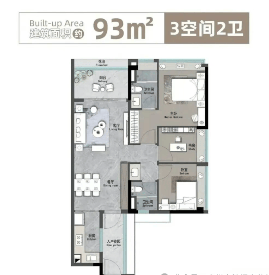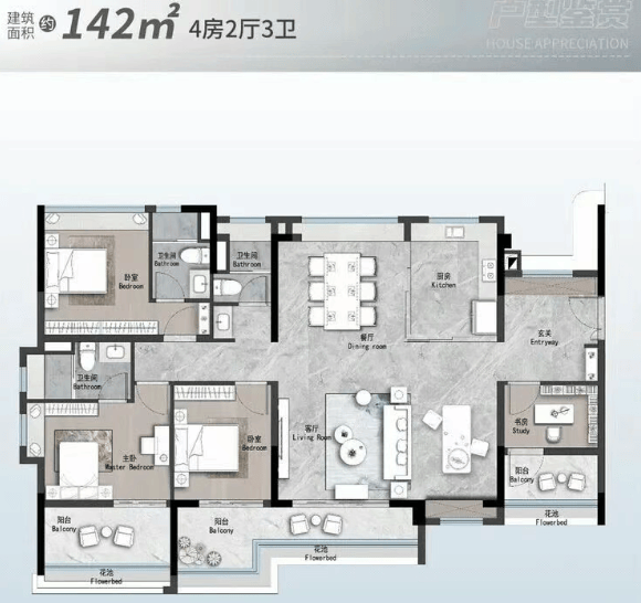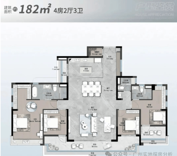 项目目前主推建面约91㎡、93㎡三房两卫,103㎡、106㎡、124㎡、125㎡、136㎡、142㎡四房两卫,以及181㎡五房三卫等多种户型,全面覆盖刚需至高端改善需求。其中,2024年新推的1号楼与2号楼为当前主力销售楼栋,远离主干道,环境更为安静,且使用率达105%,远超市场平均水平。户型设计注重空间灵活性与功能完整性,动静分区合理,部分单位实现LDKB一体化布局,提升家庭互动体验。交付标准亦极具竞争力:全屋智能化精装,配备分户式七恒全屋气候系统(恒温、恒湿、恒氧等),搭配国际一线品牌家电与卫浴洁具,从细节处保障居住健康与舒适。