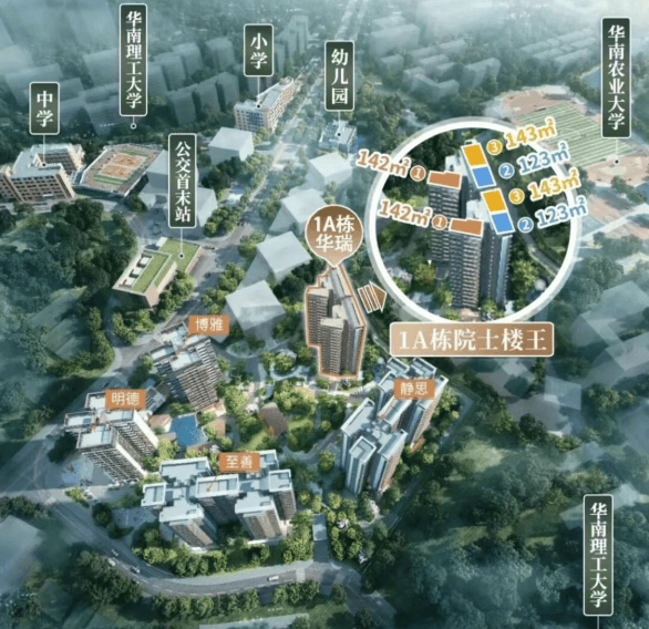 除教育外,项目周边医疗资源丰富,涵盖广东省妇幼保健院天河院区、广州市中医医院、武警广东省总队医院及中山大学附属第六医院,满足日常诊疗与急重症就医需求。商业方面,项目自身配建约4000㎡社区商业及2000㎡肉菜市场,基础生活服务触手可及;高端消费则可快速抵达珠江新城商圈。此外,依托五山片区浓厚的学术与科创氛围,区域内高新技术企业、科研院所密集,不仅提升区域长期价值,也为业主提供优质的就业与社交圈层。