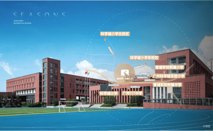 新世界四季山水深度聚焦现代家庭教育需求,构建从学前到中学的一站式优质教育体系,自身配建12班幼儿园及托儿所,实现家门口启蒙教育,家长无需远途接送,省时安心。项目周边教育资源高度密集,1公里范围内覆盖科学城小学、黄埔军校小学、黄陂小学等多所优质小学,以及广州市第一一七中学、黄埔军校中学等知名中学,全龄段教育资源环伺。