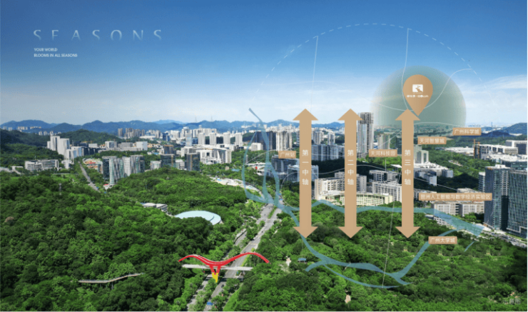 核心卖点:科学城地铁上盖、新规高使用率、全南向户型、全龄教育环伺、生态公园环绕、成熟商业配套