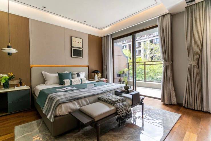 二层是"休憩"区,布局有2个卧室。主卧让人眼前一亮,完全是豪宅标准,独立卫浴、步入式衣帽间、书房一应俱全。更难得的是,其还连接了约7.4米长的阳台,清风阳光不请自来,无论是朝阳晚霞,还是日月晨曦,每一天的美景都不会缺席。