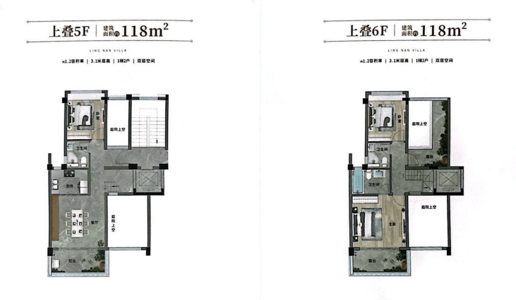 上叠户型,建面118㎡,赠送113㎡,使用率高达174%,3卧室+露台设计,超适合年轻夫妇带娃自住。
