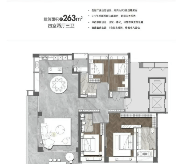 五矿万境水岸的价格优势显著,尤其是近期推出的102-120平米新规户型,得房率最高可达100%,成为刚需上车盘的热门选择。无论是紧凑实用的102平米三房双卫,适合年轻家庭或投资客;还是奢华江景大平层263平米四房双主套,都能精准匹配不同家庭结构的需求。项目的高性价比使其在未来二手市场上具有较强的竞争力。