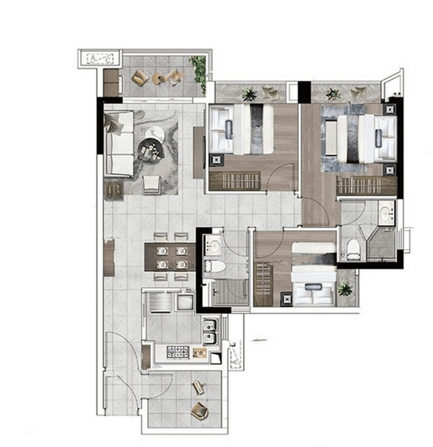 ▶ 86㎡三房两厅两卫:刚需上车首选