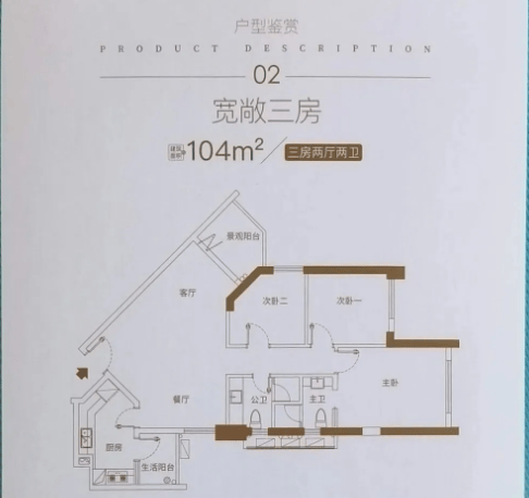 104㎡三房两厅两卫户型,更适合改善型家庭居住。该户型在94㎡户型的基础上,增加了一个卫生间,同时优化了空间布局,居住舒适度更高。主卧配备独立卫生间,保障主人隐私,同时避免了家庭成员早晚洗漱拥挤的问题。客厅面宽更大,空间更加开阔,搭配超大观景阳台,视野极佳,可俯瞰珠江畔或社区花园景观。次卧空间宽敞明亮,采光通风效果好,适合老人或孩子居住;书房面积充足,可打造专属办公或阅读空间,满足家庭多元化需求。