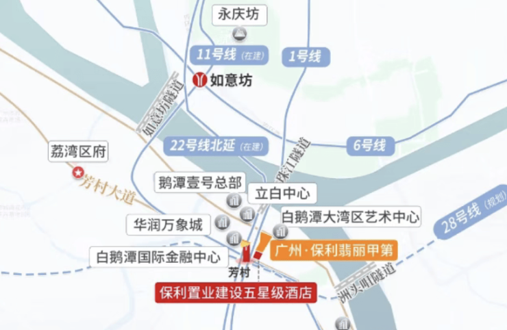 保利翡翠甲第坐落于广州市荔湾区白鹅潭商务区核心区,紧邻珠江三江交汇处,占据城市顶级资源高地。