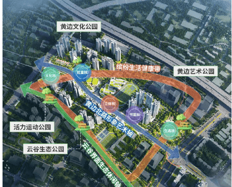 项目紧邻黄边艺术公园,未来还将与黄边文化公园、活力运动公园、云谷生态公园相串联,形成自然与人文共生的活力空间。其中,黄边艺术公园以莫奈画作为灵感,设计了多个主题花园,营造出宜居的生态环境。