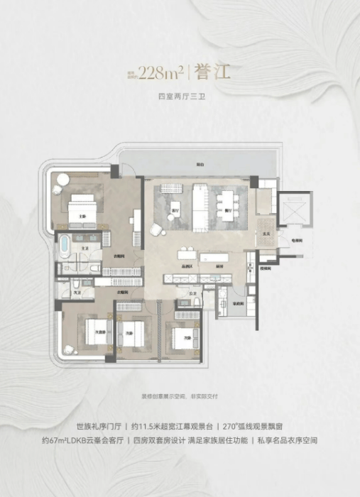 (3)建面约228㎡四室两厅三卫(誉江):楼尊户型,塔尖奢享