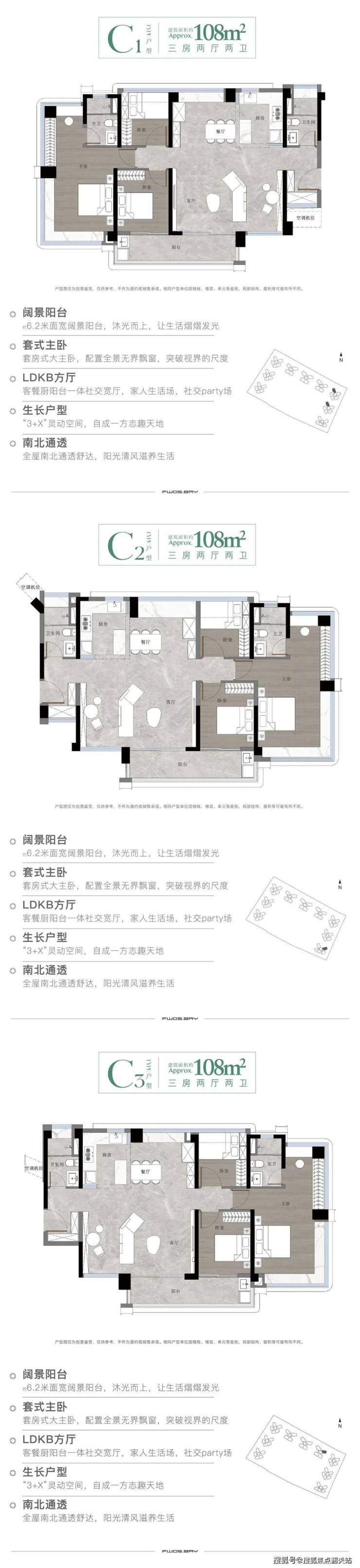 2. 108㎡三房两厅两卫:改善型爆款,南北通透