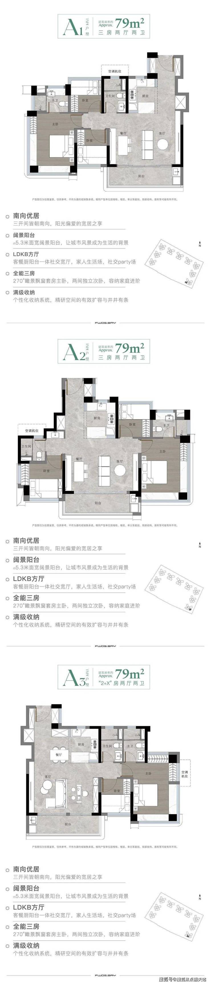 1. 79㎡三房两厅一卫:小户型大空间,刚需首选