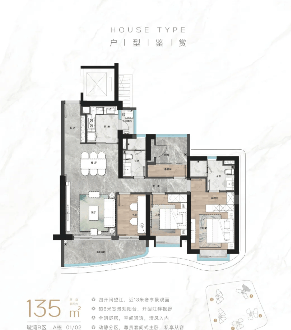 目前,广州滨江上都在售建面约109-253平方米的滨江现房及临江大平层公馆。不同户型满足了不同家庭结构的需求,从性价比高的三房到顶奢江景同堂大五房,再到一线滨江传世大平层,每一款户型均精心设计,注重细节与居住体验。