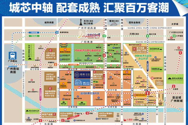 地理位置优越:位于广州新经济中轴线上,靠近多个核心商务区,具有较高的发展潜力。