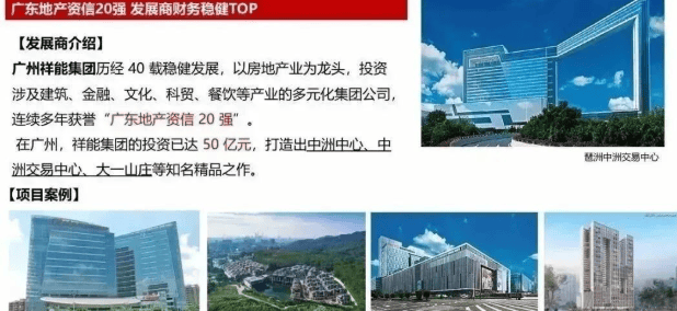 开发商——广州祥能投资集团有限公司,以房地产业为龙头,涉足建筑、金融、文化、科贸、餐饮等多个领域,是一家多元化的集团公司。凭借其丰富的开发经验和良好的信誉,广州祥能集团已经连续多年被评为“广东地产资信20强”,彰显了其在房地产行业的实力和影响力。