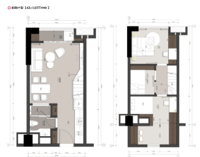 多功能户型设计:约42-84平方米的LOFT户型,适合居住或办公使用,具有很高的灵活性。