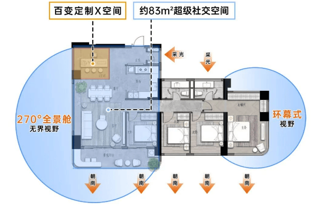 项目全系产品从139㎡起跳,是佛山新城罕见的纯大平层社区。得益于超新规政策,139㎡户型实得面积接近150㎡,使用率突破100%,并创新实现4+1房两厅两卫格局。
