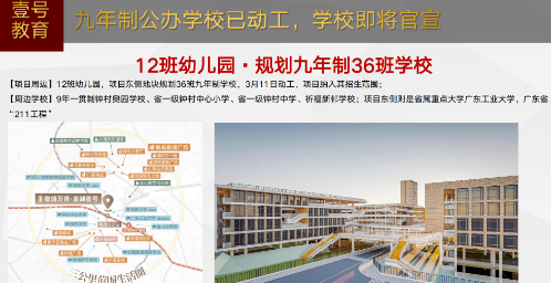 教育资源丰富,项目自带12班幼儿园,为孩子提供优质学前教育。周边规划有36班九年一贯制学校(具体招生以教育部门为准),还有九年一贯制钟村奥园学校、省一级钟村中学、祈福新邨学校等。从幼儿园到中学,全龄段优质教育资源,为孩子成长提供有力保障,让家长无需为孩子教育担忧。