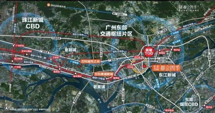 金茂万科都会四季位于增城区新塘板块,地处广州东进战略的重要节点,交通便利性显著。项目距离地铁13号线白江站约1.7公里,步行或通过社区提供的接驳巴士均可轻松到达,从白江站出发: