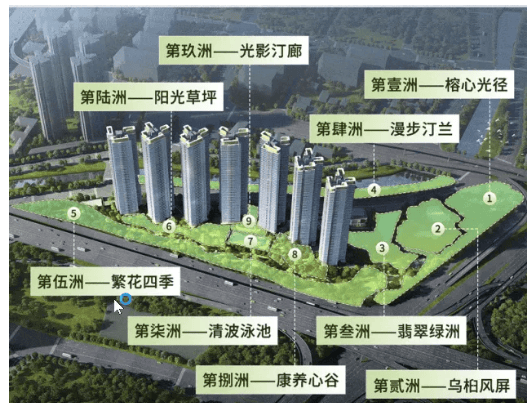 社区景观与生活配套方面,项目提出“公园九洲”理念,营造“先进公园,再归家”的生态居住氛围,南面和东面九洲双园,搭配小区内七大运动主题大花园,在园中造园、景中取景,塑造九大节点,将自然与空间联动,创造沉浸式景观体验。社区大门长约88.8米,高约8.88米,气势恢宏,在海珠区可与之匹敌者寥寥,彰显社区品质与尊贵感。