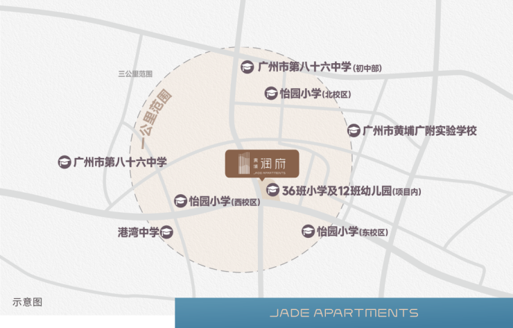 教育:配建36班怡园小学新校区(省一级),师资与管理模式与总校统一,2024年小升初考入重点初中比例达40%,高于黄埔区平均25%的水平。