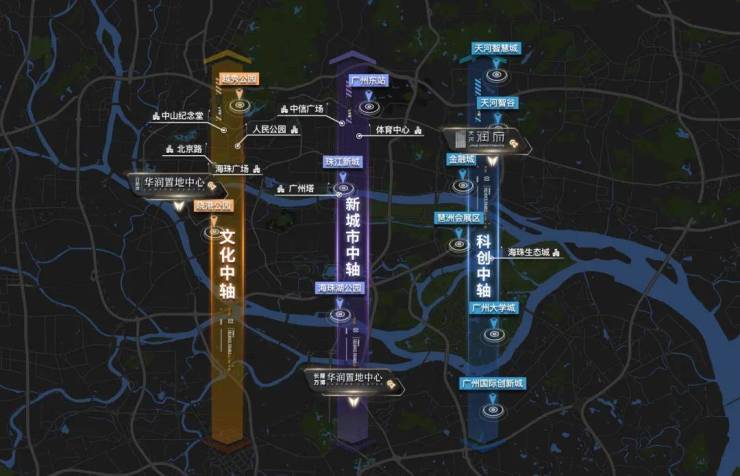这条仅占广州约1/600市域面积的中轴线,贡献了广州约1/8的GDP,聚集了广州绝大多数的总部企业、高端商业配套、文化体育地标与优质公共服务资源,是广州城市发展的核心命脉,也是粤港澳大湾区极具影响力的经济发展核心带。