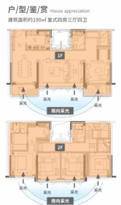 复式户型空间开阔,合理分区,实现客餐厨一体化及多功能灵活布局。全南向设计确保采光通风效果,部分户型预留景观阳台或露台空间。院墅产品强调独立性及私密性,包含多功能厅、书房及花园区域,满足多代同堂或高端社交需求。