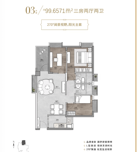 ✅ 103㎡三房:大面宽客厅+阔景阳台,部分高区单位视野开阔,适合三代同住。