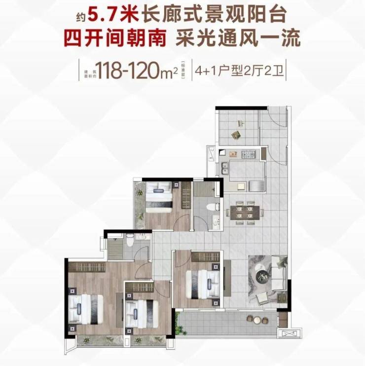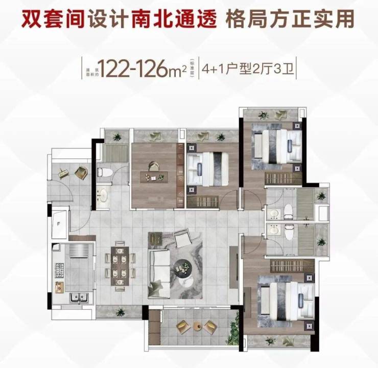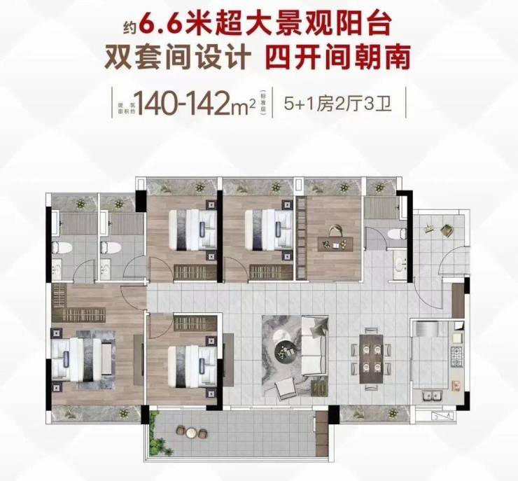 126㎡4+1房:双主套配置,5.7米观景阳台,总价约756万起;