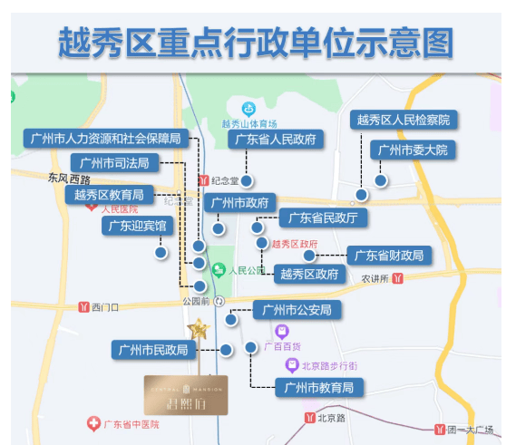 项目步行即达北京路商圈,涵盖北京路步行街、天河城、广百百货等成熟商业体,日常消费、高端购物、文化娱乐一应俱全。医疗资源尤为突出:1公里范围内汇聚广东省人民医院、广州市第一人民医院、广东省中医院等多家三甲医院,健康保障能力位居华南前列。此外,项目毗邻人民公园、越秀公园、东山湖公园三大城市绿肺,2022年越秀区空气质量居广州中心城区首位,真正实现“繁华与生态共生”的理想生活范式。