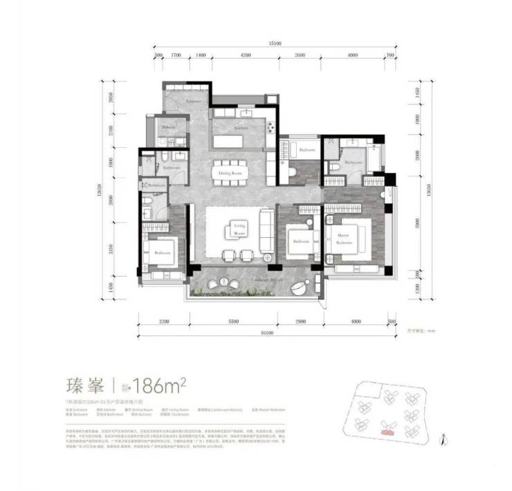 186㎡:五房两厅三卫,楼王户型,极致奢华。