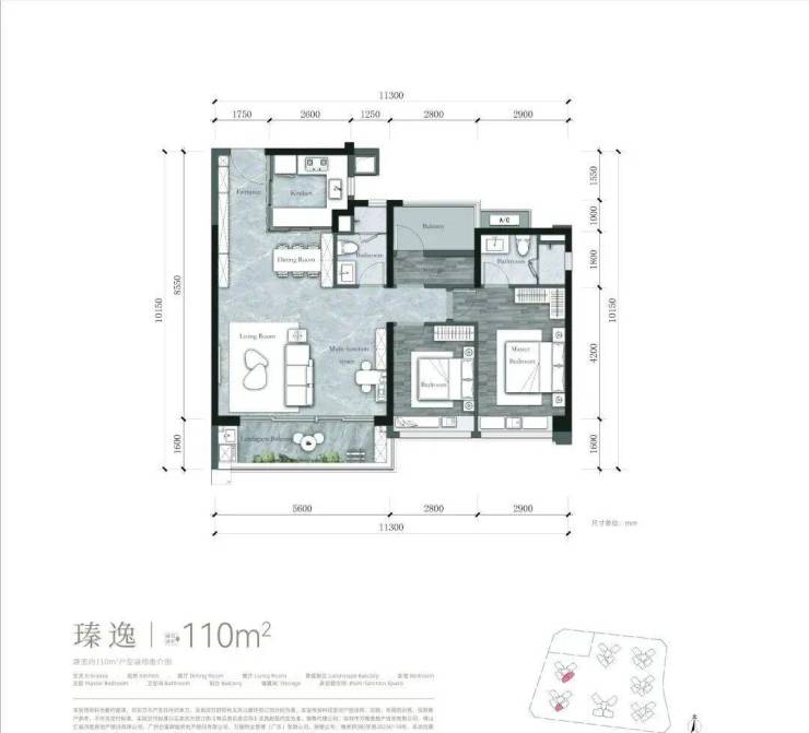 110㎡:三房两厅两卫,适合刚需及首改家庭。