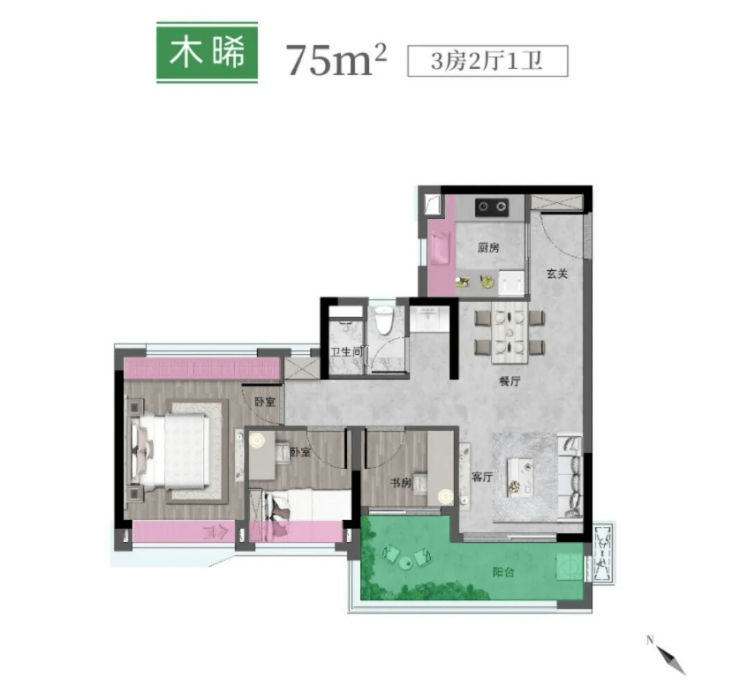 75㎡ 三房两厅一卫(刚需首选)