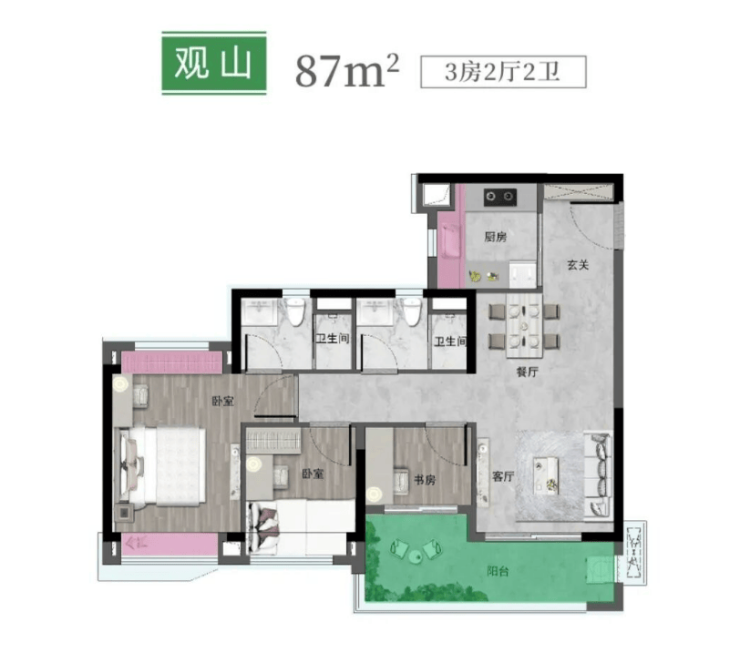 88㎡ 三房两厅两卫(主流爆款)