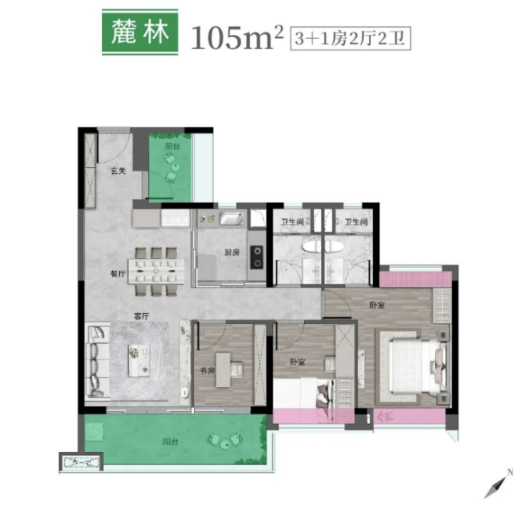 105㎡ 四房两厅两卫(改善王牌)