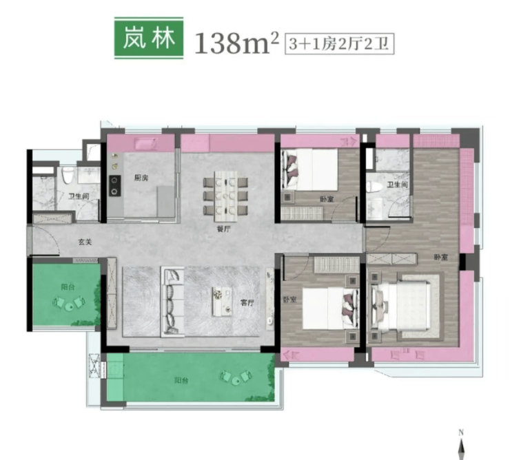 135㎡ 四房两厅两卫(楼王户型)